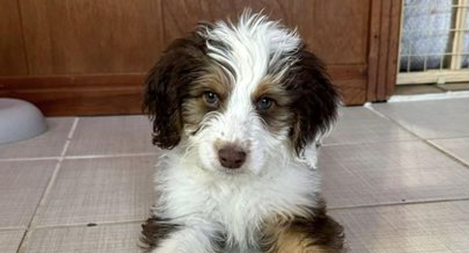 Our Aussiedoodle puppies include sable, brown and white, black and white, black tri-color, and red tri-color. Goldendoodle puppies include cream and black. Colors will vary depending on the parent dogs.