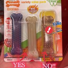 DO NOT BUY ANY CHEW TOY LABELED “EDIBLE”. Give them Milkbone type treats instead.