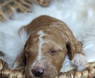 Starr is a female Goldendoodle. Carefully selected as a great representative of her breed, Kayla decided to make her part of their program. Kayla has passed Good Dog’s screening process, which involved a review of their breeding practices, environment, and the mental and physical health of their dogs.