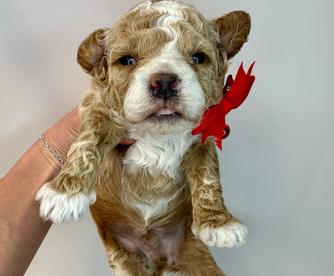 Our Goldendoodle puppies include cream, apricot, red, and parti. Aussiedoodle puppies include blue merle, red merle, black and white, and black tri-color. Colors will vary depending on the parent dogs.