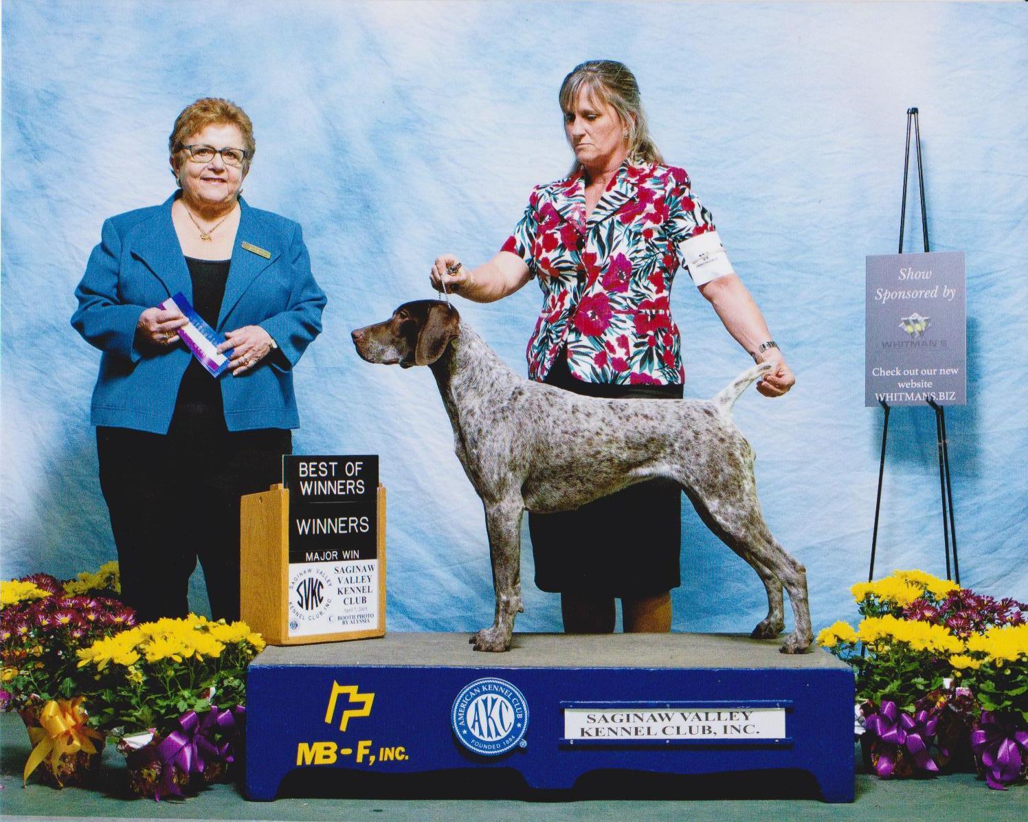 We are also the home of "Diesel" also know as BISS AM GRCH/Can CH Hotwired's Jager He's Da Bomb. He is Multiple Group Winning, Multiple Group Placing, Multiple Best in Specialty Show Winning and Record Holding. His boasts now include: record holder, American GCH, Canadian CH, top 10 finishing (2008) top 15 finishing (2007) AOM, Multiple BISS including the Big Apple Sporting dog Specialty, Westminster Weekend, and now add proven producer. Diesel’s son Dawson Am/Can CH LegacyK Hotwired Analyze This has achieved his Master Hunting title and won Best in Futurity at the 2009 GSPCA National Specialty.