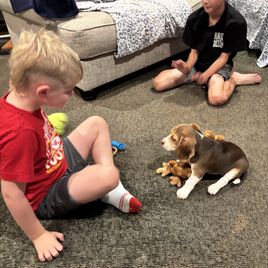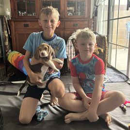 Kevin was very easygoing and responded back very quickly with any questions we had about their litter. Leah his wife was the litter’s caregiver. She addressed all our training concerns that we wanted to address. Crate, piddle pad, doggie door and social play for our beagle Liberty Blue. Their house was setup for the litter to have access to inside and outside play. The play and sleep areas were very clean. Leah would send videos of all her training accomplishments. I would highly recommend Kevin and Leah to anyone looking for a beagle. Her transition from there home to our home has been very easy. Liberty Blue was born on 9/11/25 🇺🇸 and has brought joy and happiness into our family. Pam & Kirk