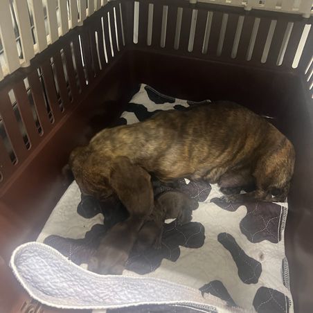 This little brindle is just stunning and she is by far the best loving caring mother she is a lover I can’t say enough about this precious doll.