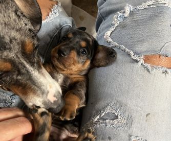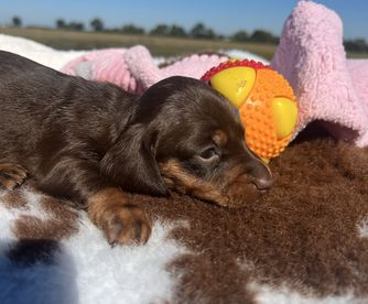 I'm Mishelle B., the breeder behind Hounds by Mishelle located in Carthage, MO. Dachshunds have proven to be the greatest companions to our family. We started breeding to contribute to breed betterment and to share smart and loveable puppies with other families.