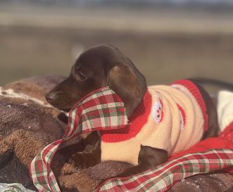 Our Dachshund puppies include smooth and longhaired coat varieties. Coat types may vary depending on the parent dogs.