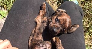 Rhonda and Teddy’s litter have all found new homes except Miss Fredrica( Freddy) she is dark chocolate with brindle feet and brindle markings on her face. She is very playful just an absolute doll.