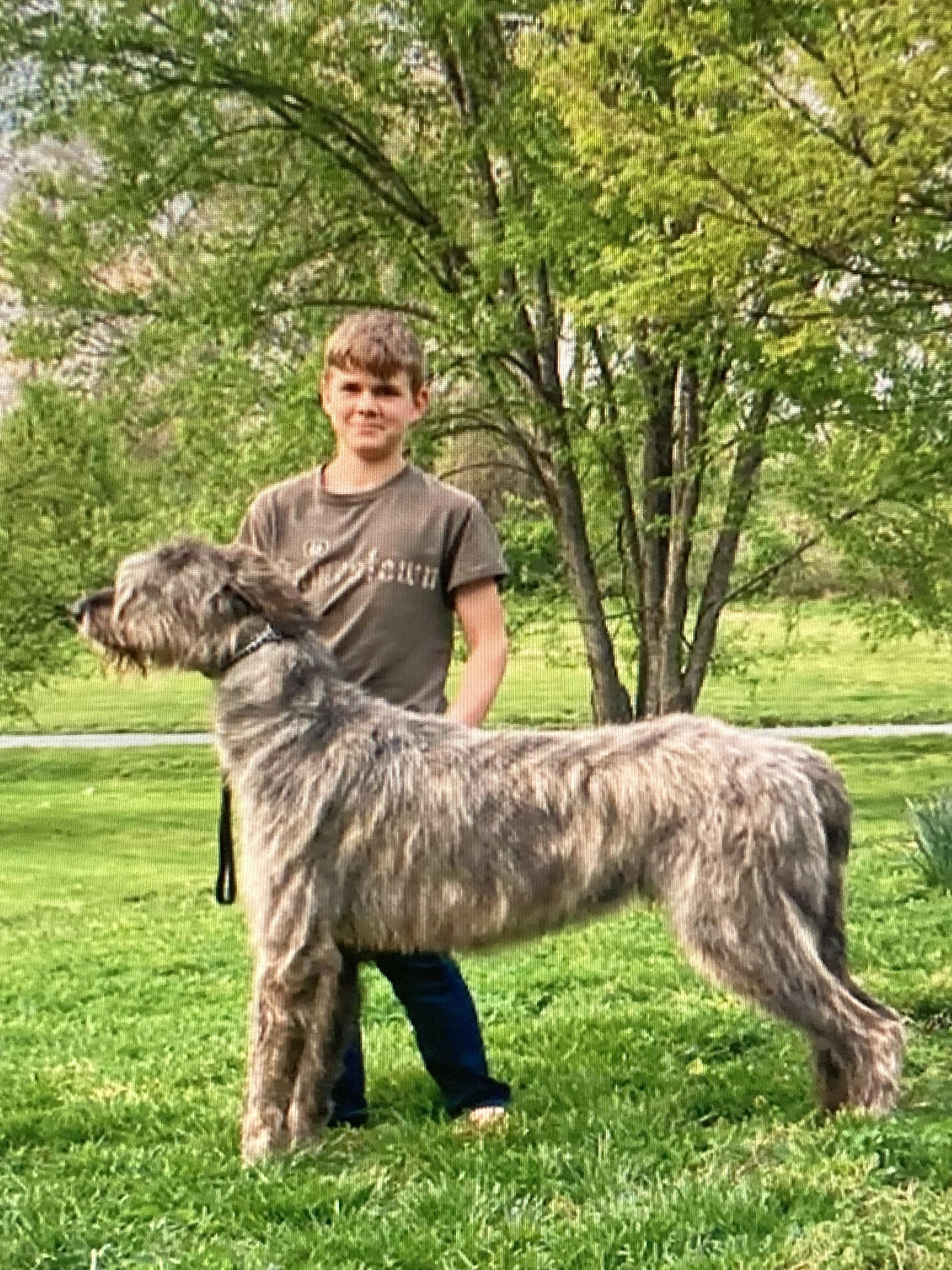 Sheena is a female Irish Wolfhound. Carefully selected as a great representative of her breed, Jason decided to make her part of their program. Jason has passed Good Dog’s screening process, which involved a review of their breeding practices, environment, and the mental and physical health of their dogs.