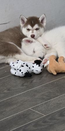 Jon Snow is a CKC-registered black and white Siberian Husky with a calm, loyal temperament. He’s playful yet laid-back, always ready for a good hike or outdoor adventure. He enjoys hunting and exploring but loves relaxing with his people just as much. Jon Snow has a gentle, affectionate nature and is happiest when cuddling close after a long day of play