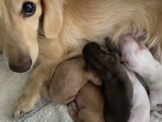 Pierre is a male Dachshund. Carefully selected as a great representative of his breed, Sarah decided to make him part of their program. Sarah has passed Good Dog’s screening process, which involved a review of their breeding practices, environment, and the mental and physical health of their dogs.