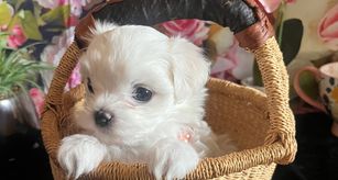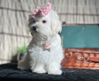 Our Maltese puppies include white and white and lemon. Assorted Doodle Crosses puppies include cream, black, and red. Poodle puppies include black, cream, and red. Colors will vary depending on the parent dogs.