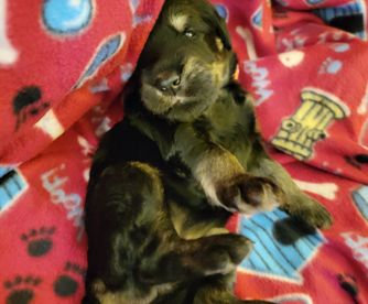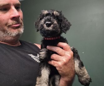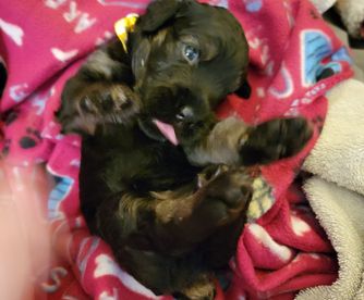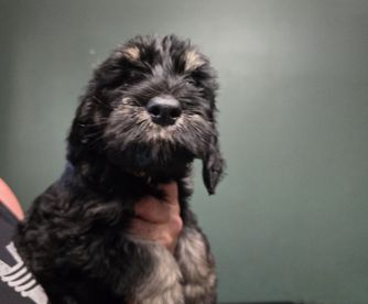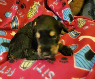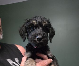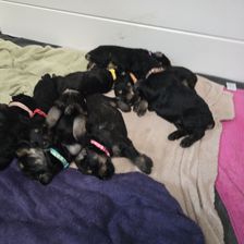 Our puppies include black and tan and pepper and salt. Colors will vary depending on the parent dogs.