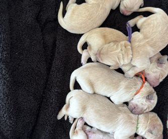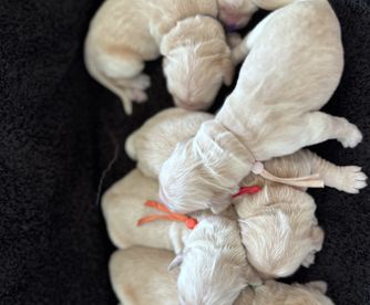My puppies go home ready to be successful pets. We work on neurological stimulation, potty training, clicker, and start crate training before they go home. All of our Goldens are raised and live indoors. We spend multiple times each day with our puppies giving them personal attention and group play time.