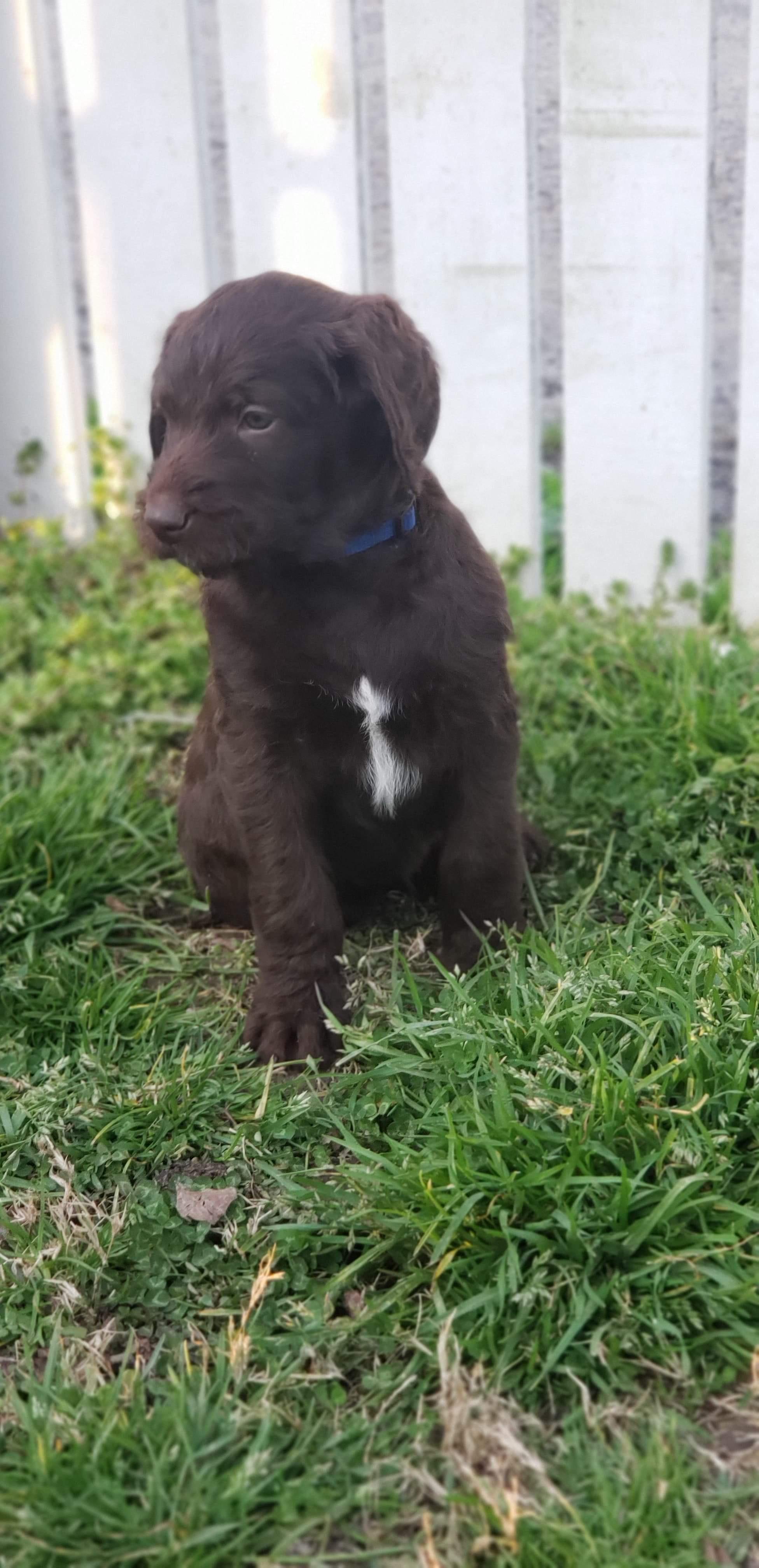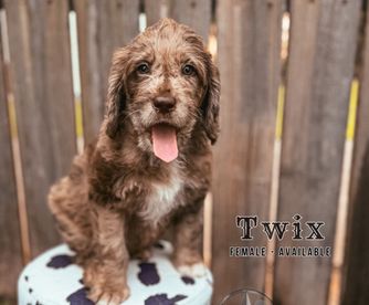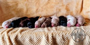 Our Labradoodle puppies include chocolate and black. Bordoodle puppies include white and red merle, white and red, white and gold, white and blue merle, white and black, red merle, red, gold, and blue merle. Colors will vary depending on the parent dogs.