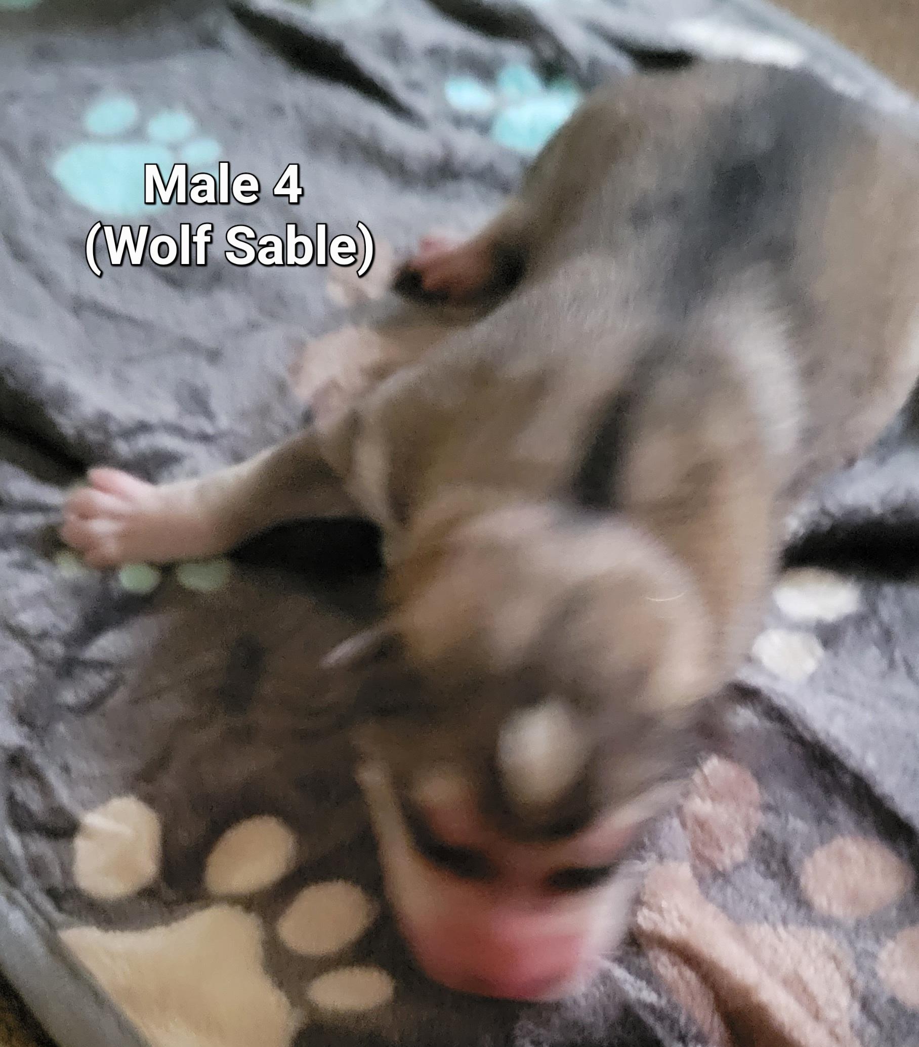 Our puppies include sable and white, red and white, and agouti and white. Colors will vary depending on the parent dogs.