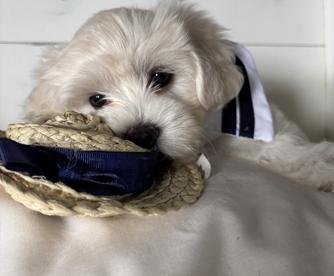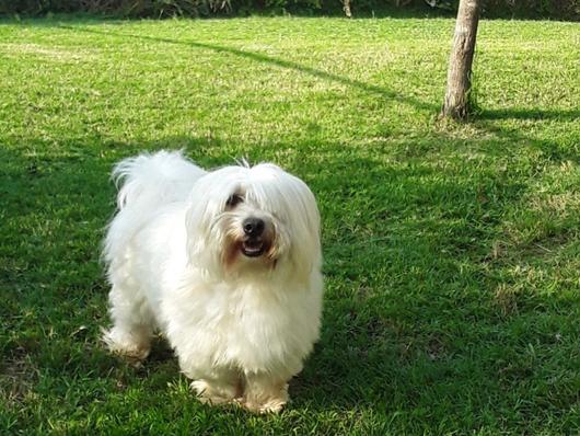Gemma is a beautiful white Coton. Registered through AKC with numerous grand champions on her pedigree on both her Momma and Dads pedigree. She has many relatives presently in the show arena.