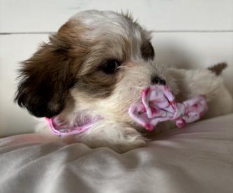 Faith is a beautiful mink colored Coton. Truly a rare little girl. aKC and APRI dual registered.