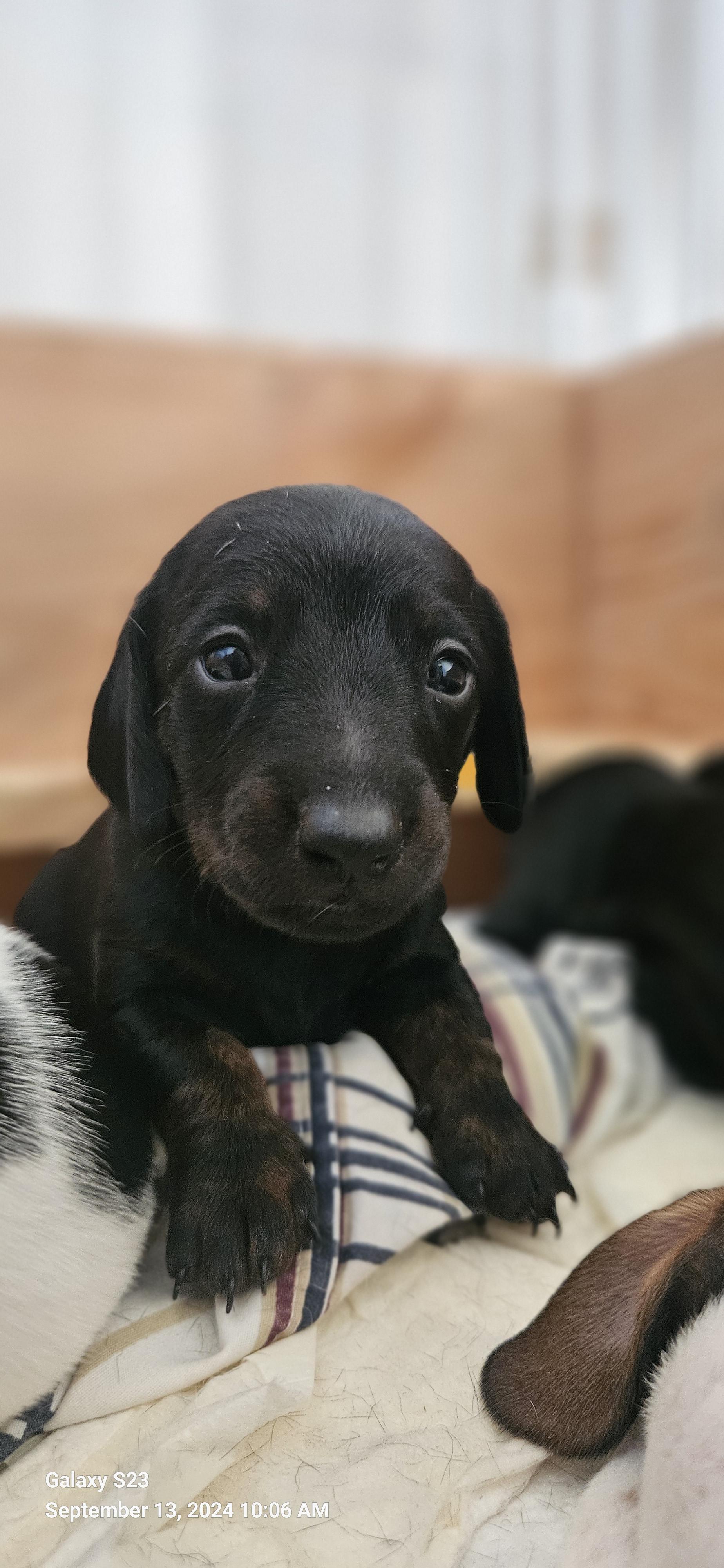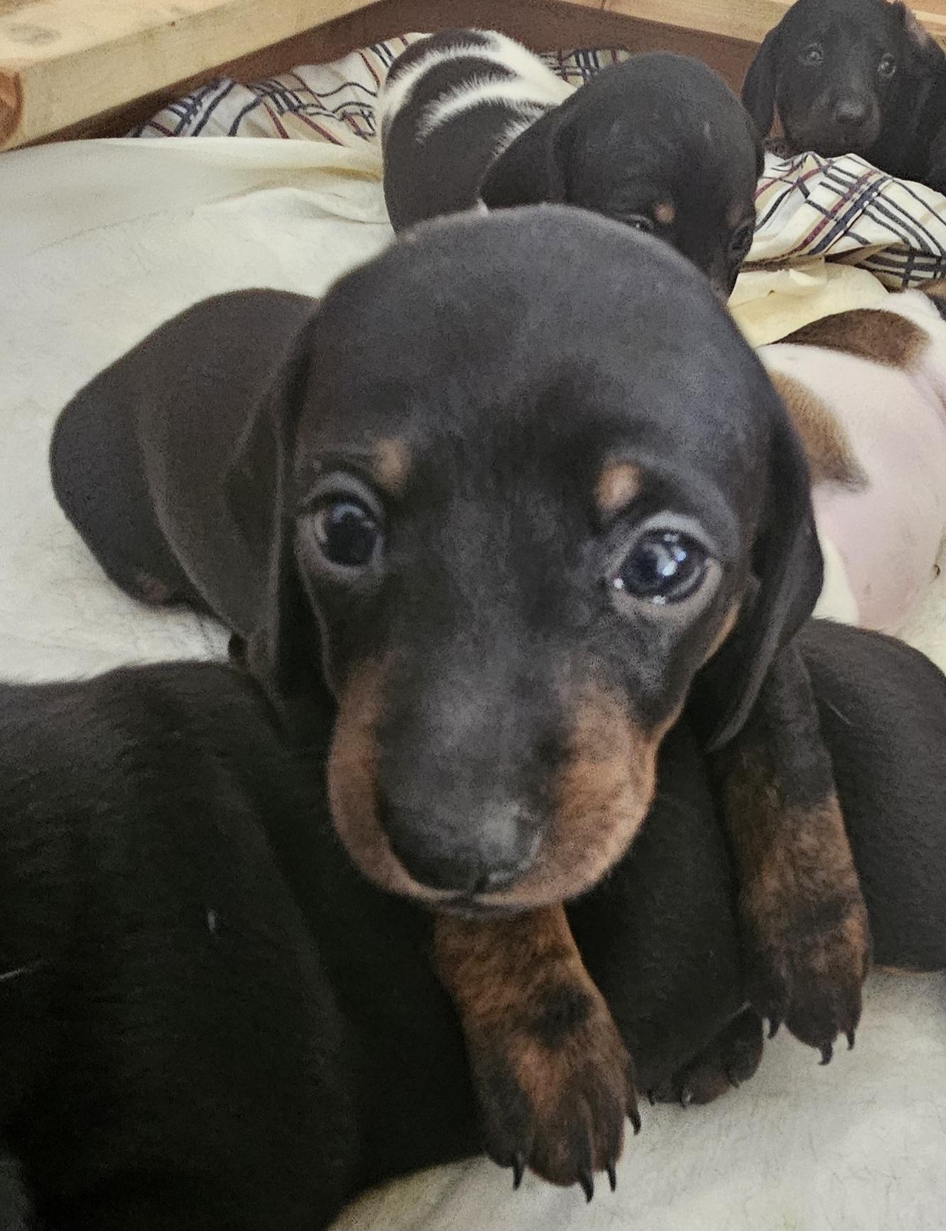 Our puppies include black, black and tan, and chocolate and cream. Colors will vary depending on the parent dogs.