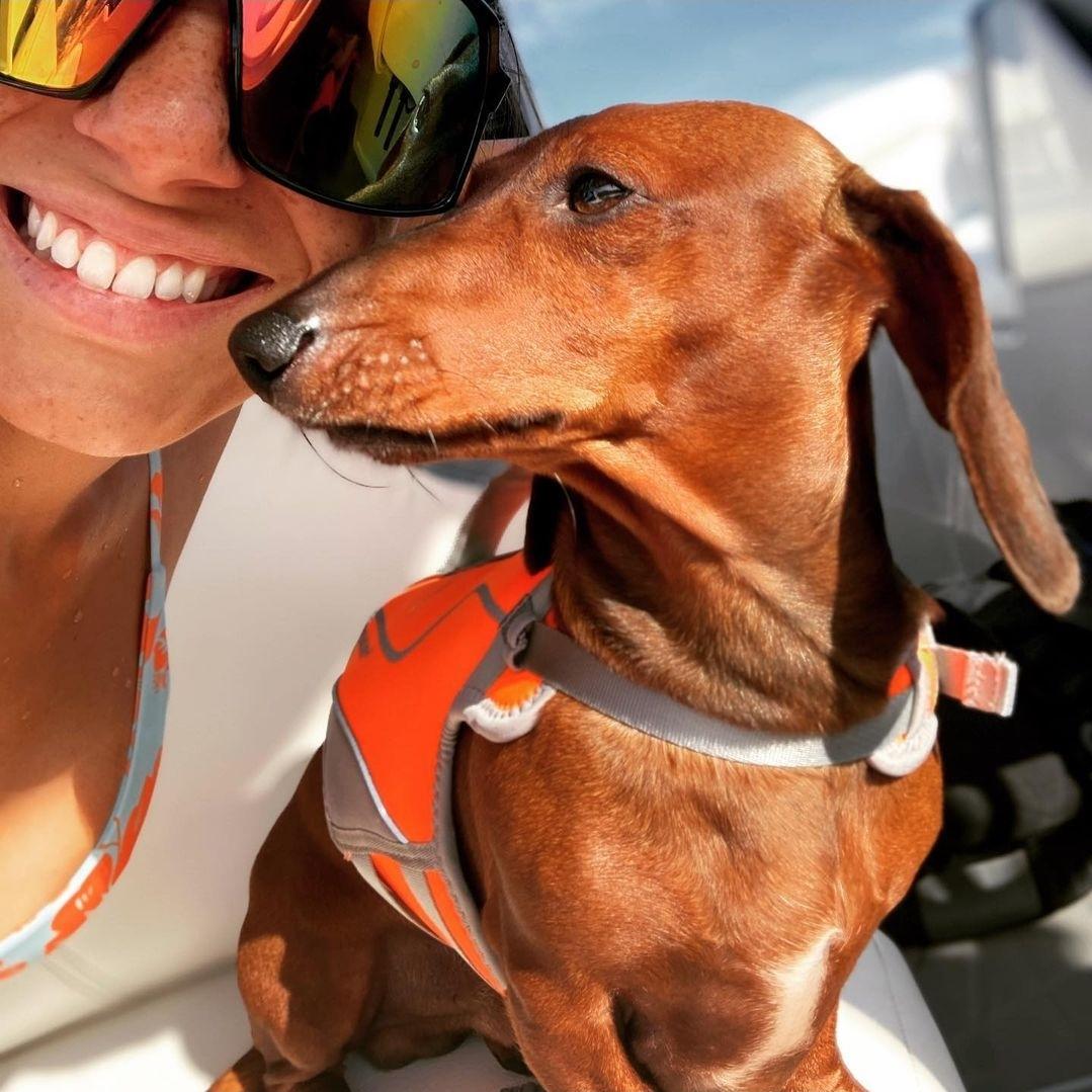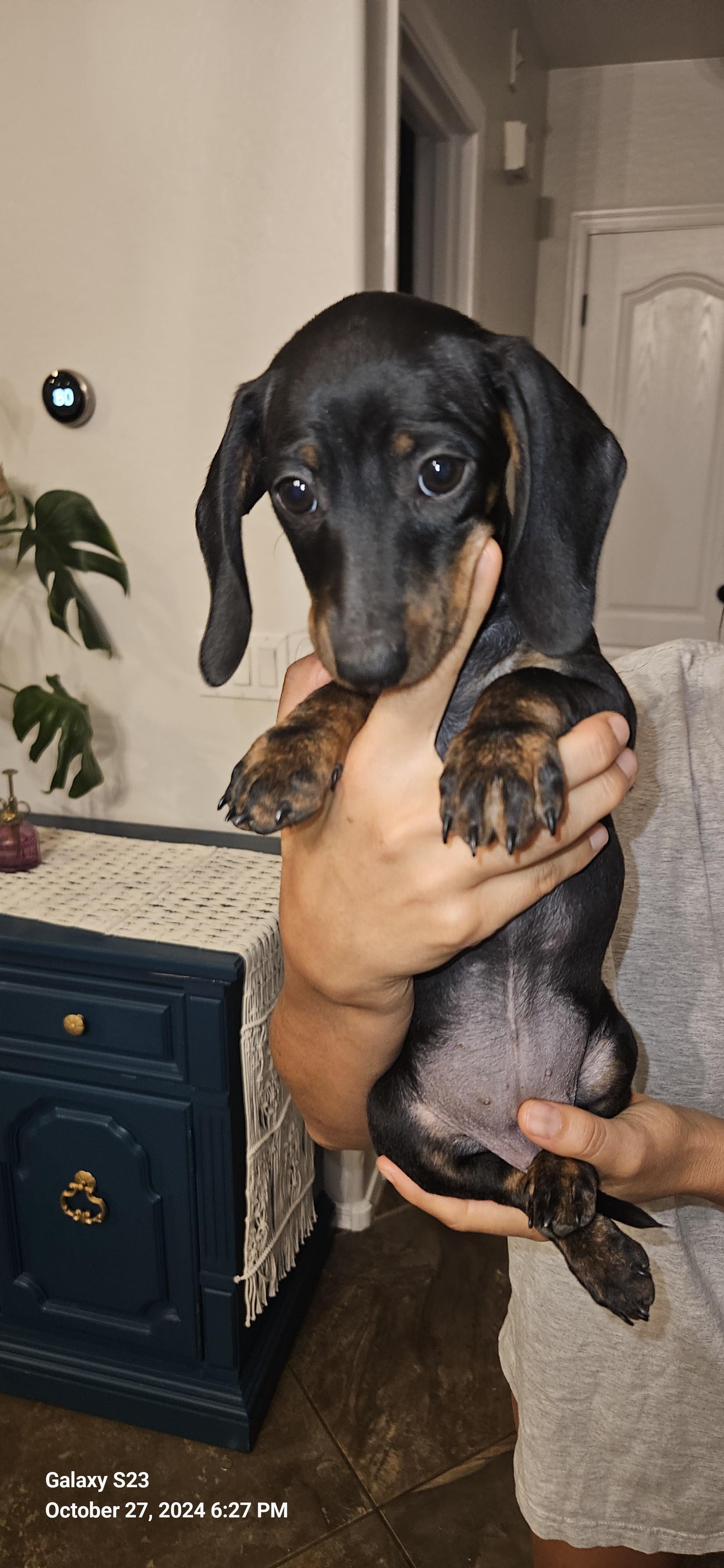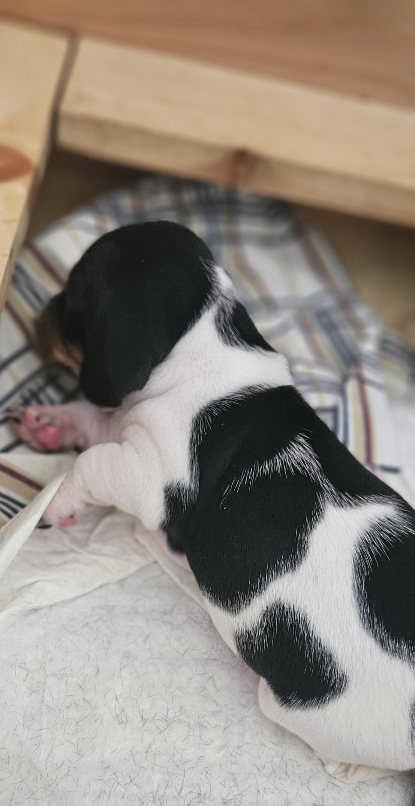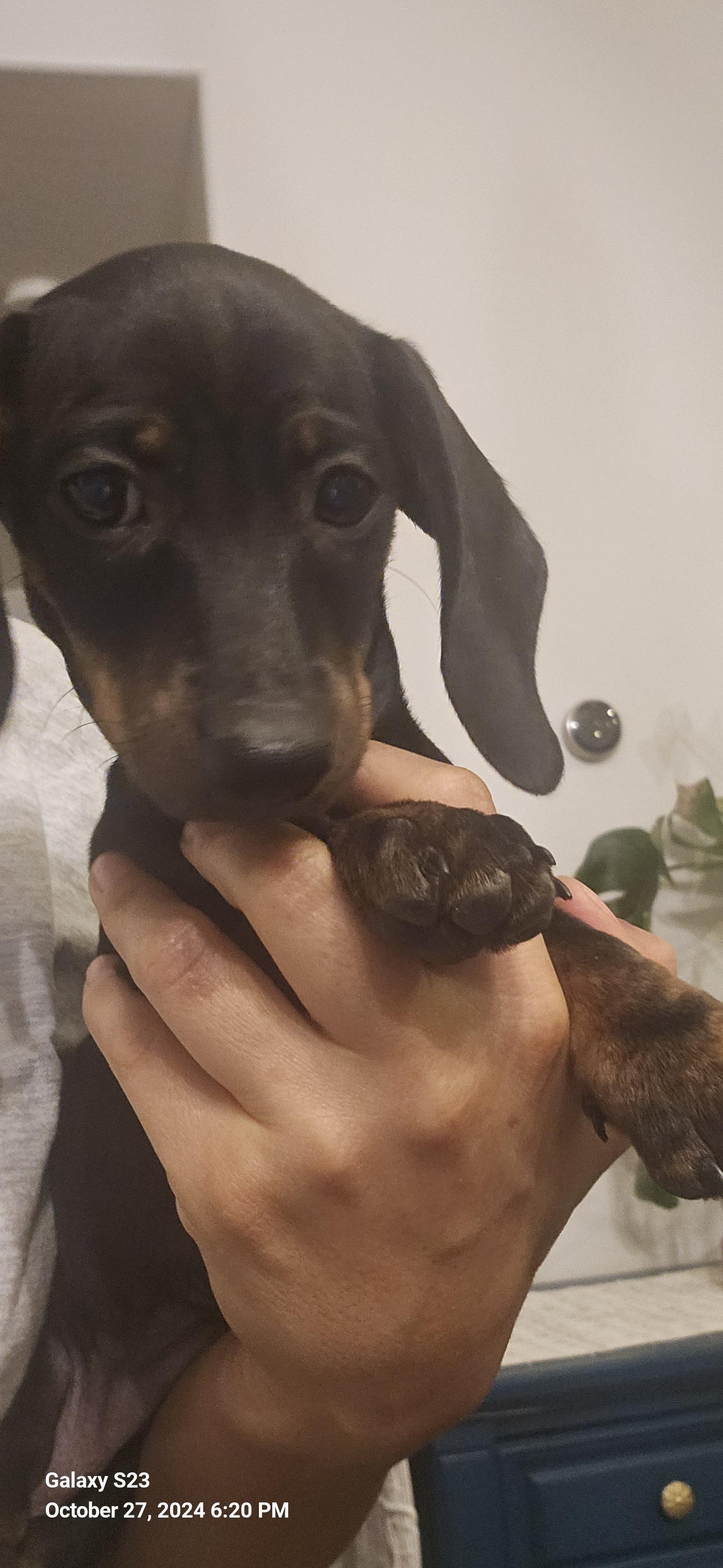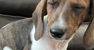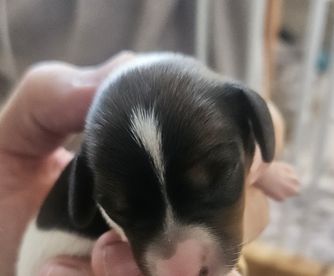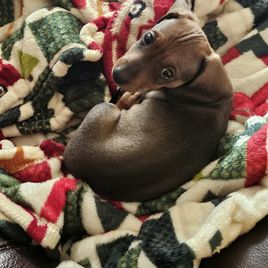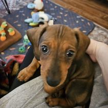 Meet Sundai, a charming miniature Dachshund with a delightful splash of character! This little lady is draped in a coat of creamy white adorned with whimsical brown spots, each one adding to her unique and endearing appearance. Her petite frame is complemented by her long, elegant ears and expressive dark eyes, which sparkle with curiosity and playfulness. Bella's short legs may be small, but they carry her with a spirited bounce, making every walk an adventure. She's not just a sight to behold; her affectionate nature and cheerful demeanor make her the perfect companion for cozy cuddles and lively playtime. Whether she's lounging on the couch or trotting around the yard, Bella brings a touch of joy and charm wherever she goes.