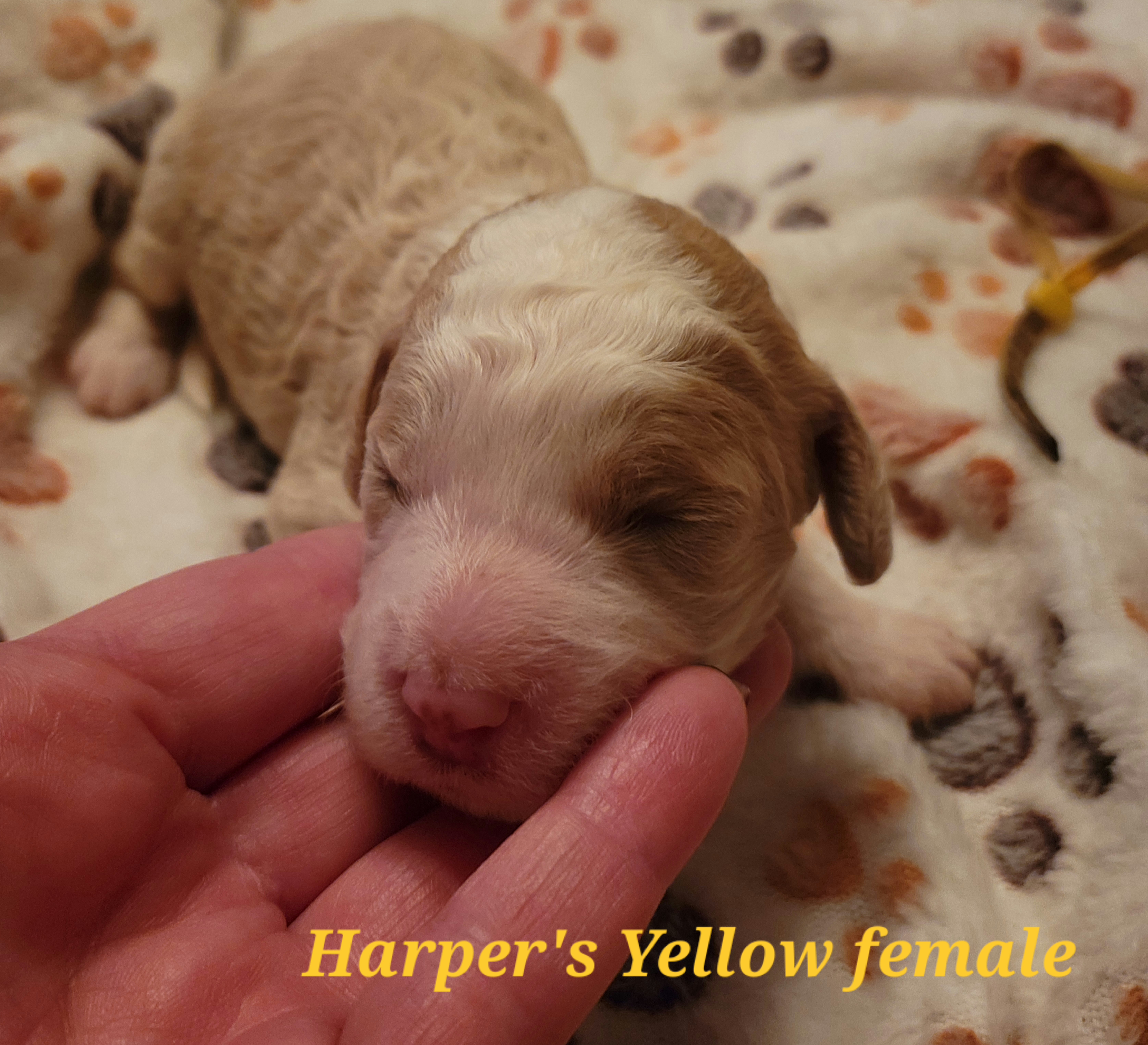 Harper is a female Goldendoodle. Carefully selected as a great representative of her breed, Allison decided to make her part of their program. Allison has passed Good Dog’s screening process, which involved a review of their breeding practices, environment, and the mental and physical health of their dogs.