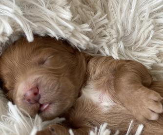 We brought little Rocky home just over a week ago, and everyone in the house is totally in love. He is happy, healthy, and very smart. I enjoyed working with Jennifer at Huckadoodle Farm. She was very responsive and answered all of my new fur-mom questions. It was clear that all of her puppies were loved and well-socialized. Rocky came home as a spirited, loving little guy. We are considering adopting another baby. I can't recommend her highly enough. She was a breath of fresh air after dealing with dishonest, unscrupulous breeders online! Thank you Jennifer!