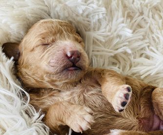 Bernedoodle puppies include sable and tri-color. Goldendoodle puppies include cream and apricot. Colors will vary depending on the parent dogs.
