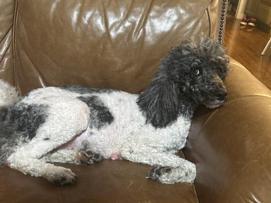 Julius is a full blooded poodle. Tri color and one big sweetheart.