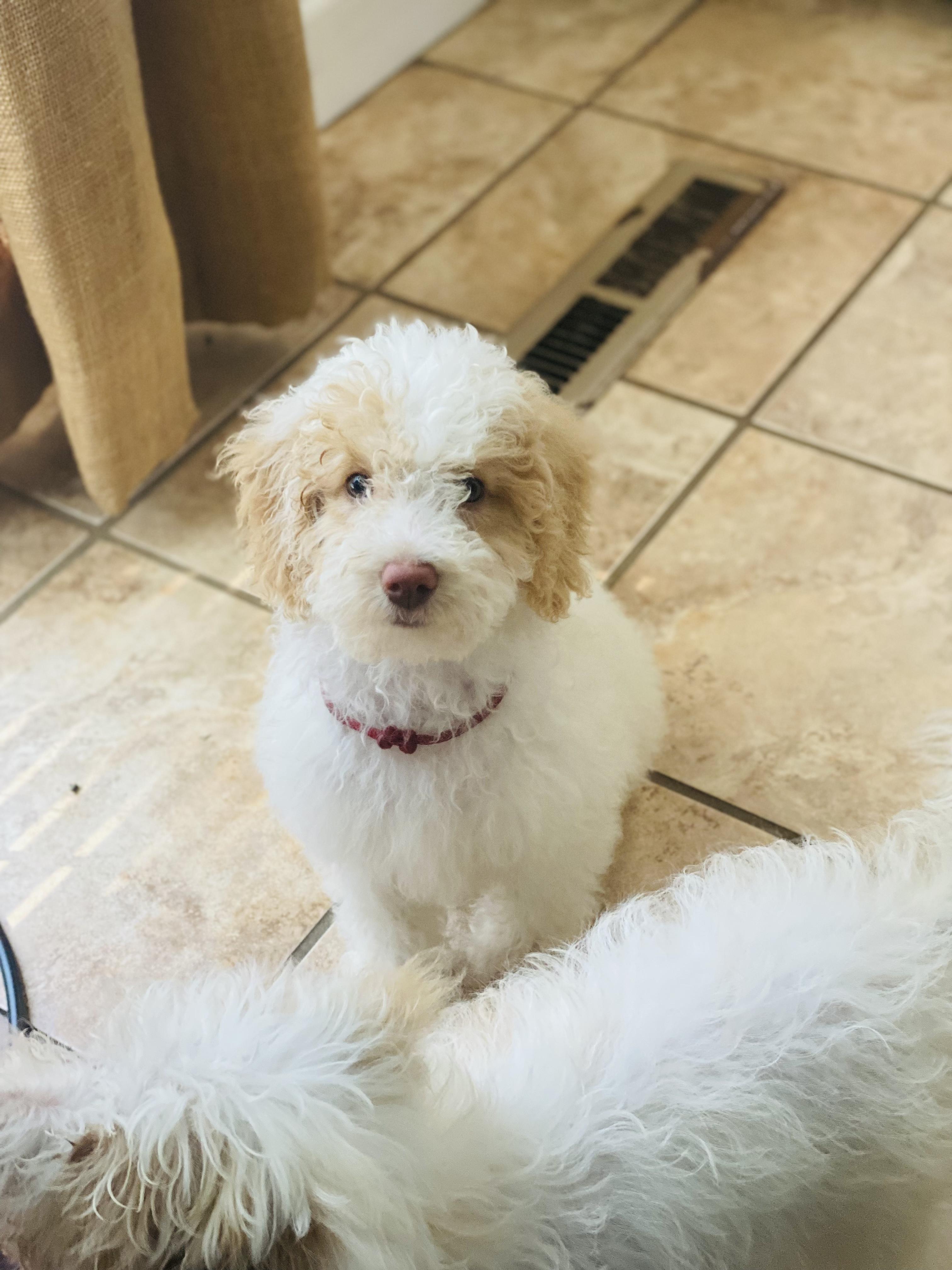 Our Bernedoodle puppies include sable and tri-color. Goldendoodle puppies include cream and apricot. Colors will vary depending on the parent dogs.
