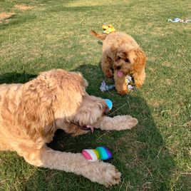 I'm Jennifer H., the breeder behind Huckadoodle Farm located in Arabi, GA. My dogs are smart. Mixing a Poodle with a F1 Goldendoodle, F1 Bernedoodle and a F1 Cavapoo, not only gives them a longer life but the intellect of the poodle. Mixing two gives you the fun-loving personality of each bred. Pick us, and you will end up picking two! My dogs are my family, and I can't wait to welcome you into this loving community!
