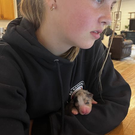 I'm Savannah, the breeder behind Huckleberry Hill Aussies LLC. located in Aberdeen, NC.  Rooted in family, guided by purpose, and refined through experience, Huckleberry Hill is more than a breeding program—it’s a philosophy. We are proud to be AKC registered, and every puppy we raise is bred with purpose, raised with intention. From day three, our puppies begin Early Neurological Stimulation, laying the foundation for confident, resilient companions. Raised in a lively home environment and matched by personality, our Australian Shepherds are nurtured to thrive—whether as loyal family members, working partners, or adventure-ready friends.