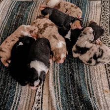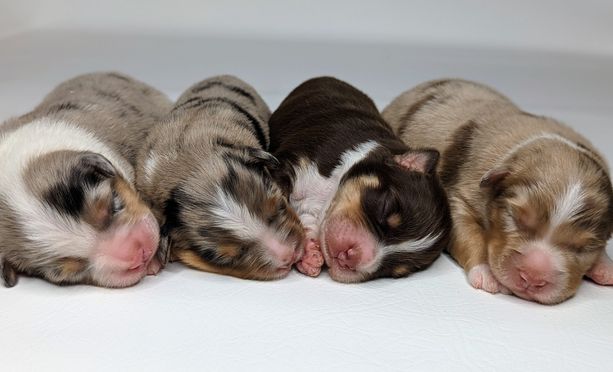 Our puppies include black, red merle, blue merle, red, black tri-color, and red tri-color. Colors will vary depending on the parent dogs.