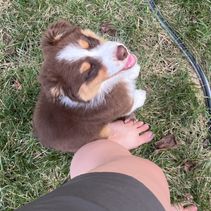 I cannot recommend Huckleberry Hill Aussies enough! We lost our sweet aussie at the start of 2025. In late summer, I finally started the journey to welcome a new pup into our lives. We were still mourning but we missed having a second dog in the home and our GSP/chocolate lab was ready for a new friend. I didn’t think it would happen so fast but when I first picture of Reed, I was in love. Savannah was so wonderful and responsive when I reached out to inquire more about him. We ended up having a call the same day and she listened thoughtfully when I told her why we were looking to add to our family. It was so obvious how much she knows about this breed and how intentional she raises these puppies to be companions. Reed was a bit different than her other adoptions as he was originally reserved but due to a change in the family’s circumstances, Savannah and her family had him for longer than normal! She was able to tell me so much about his temperament, what he liked, tricks he knew, and you could tell immediately the love and care and work her family had put into this dog. She answered all my questions and shared stories about how he had been her daughter's little buddy, and I was hooked. By the end of the call, I was ready to bring him home! Savannah made the process so seamless! A few days later we brought him home. He’s been a part of our family now for two months and he’s brough such joy to our lives. We’ve renamed him Buckley, Buck for short and it’s so fitting. We love him, he’s the happiest boy, he gets along great with our other dog, he loves walks, frisbees, and visiting new restaurants and parks! We cannot thank Savannah enough for raising him and bring us together!