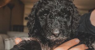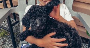 Sutton is our AKC registered standard poodle. She has championship bloodline along with her Good Citizen award, hunting back ground, and completed S.T.A.R puppy training. She has the best manners and is so loving and so smart! She has a amazing thick black coat as well but she carries hight curls!