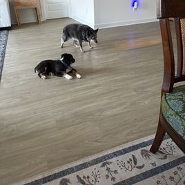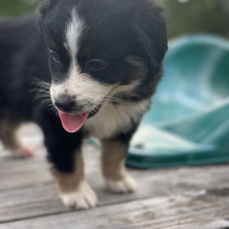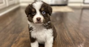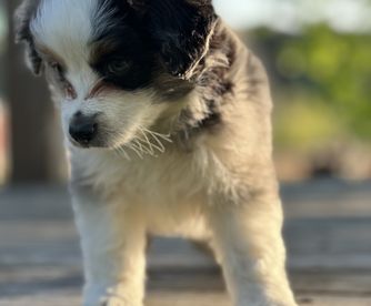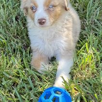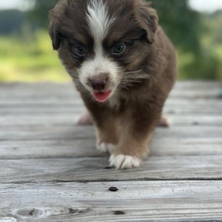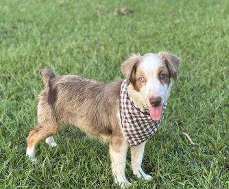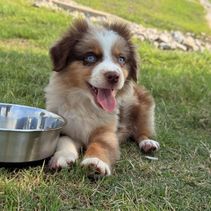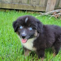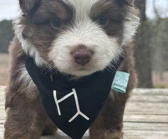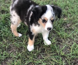 We searched for mini Aussies for weeks, looking at puppies from several breeders. When I came upon Huddleston Farms and inquired about her available puppies I was amazed how quickly I received a reply to my message through Gooddog. From that moment Alicia was quick to answer all of my questions. When we made the decision on the puppy we were most taken with, Alicia was more than willing to meet us and allow us to see him first hand. After our first visit we had no doubt we made a good choice with not only our chosen puppy but Alicia and Huddleston Farm as the breeder. While we waited for "Rusty's" pick-up day to arrive, Alicia provided us weekly pictures and updates as they applied to his health. We have had Rusty now for our first full week and have been nothing but pleased! Rusty settled into his new home with us immediately and has demonstrated all the beginnings of being a well balanced and socialized, furry addition to our home. My wife and I have ambitions for a second pup in the near future as a companion for Rusty and I have no doubt that we will look to Alicia and Huddleston Farm as our source for a high quality example of the Mini Australian Shepherd breed. We couldn't be more pleased!!