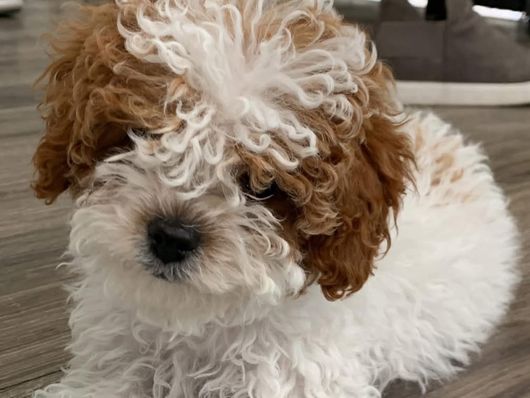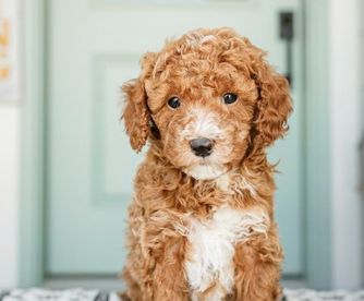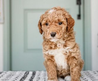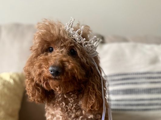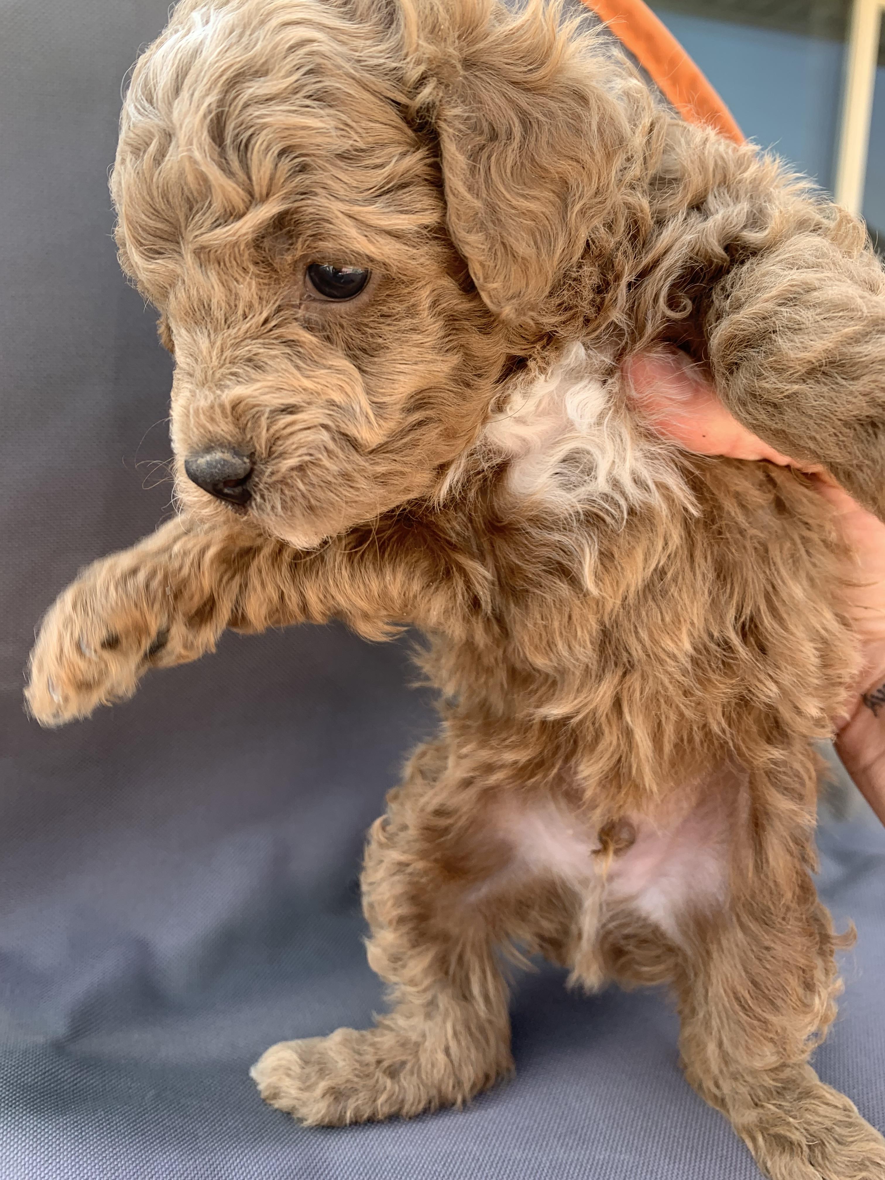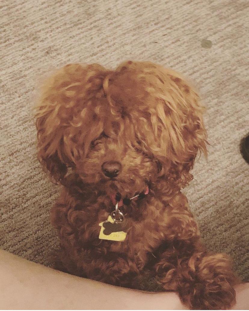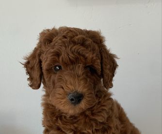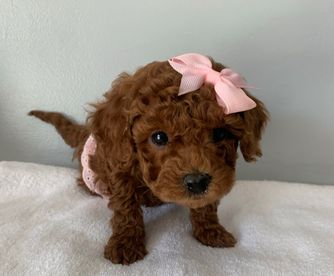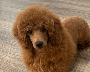 Bow is a curly 9/10 intense red AKC mini poodle. She carry’s Dd, Bb, ee, atat, kbky, ss. She is smart, beautiful and an amazing mother. We love Bow (aka Lucy)