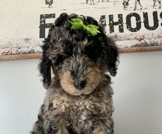 Poppy is a small standard coming in at 38lbs. She is extremely smart and sweet. She is very calm. She is a wonderful, nurturing mother. Her and her puppies are raised with lots of love. She is genetically cleared through animal genetics. Her puppies are perfect and super smart!