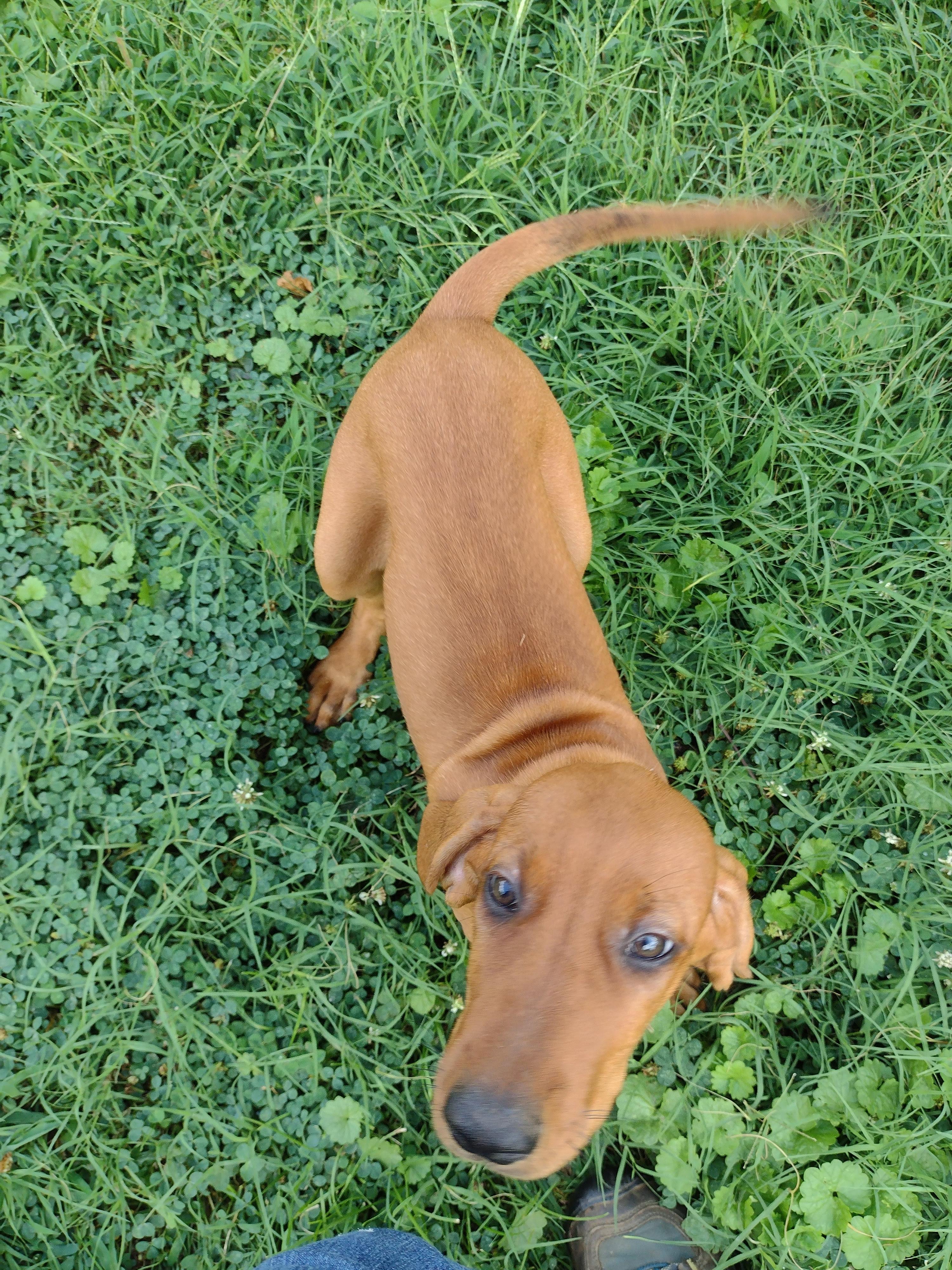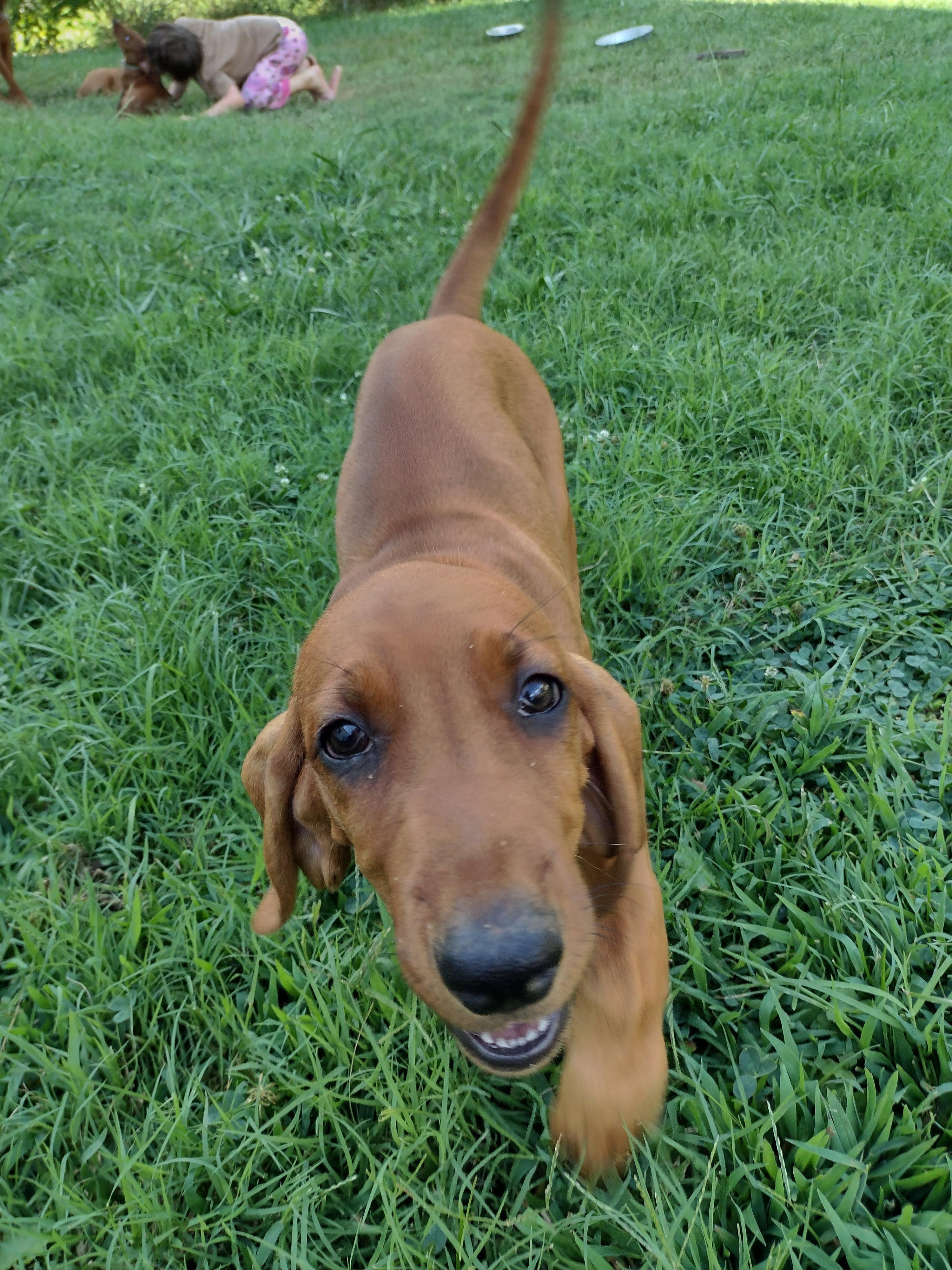 Rosie is a female Redbone Coonhound. Carefully selected as a great representative of her breed, Jackie decided to make her part of their program. Jackie has passed Good Dog’s screening process, which involved a review of their breeding practices, environment, and the mental and physical health of their dogs.