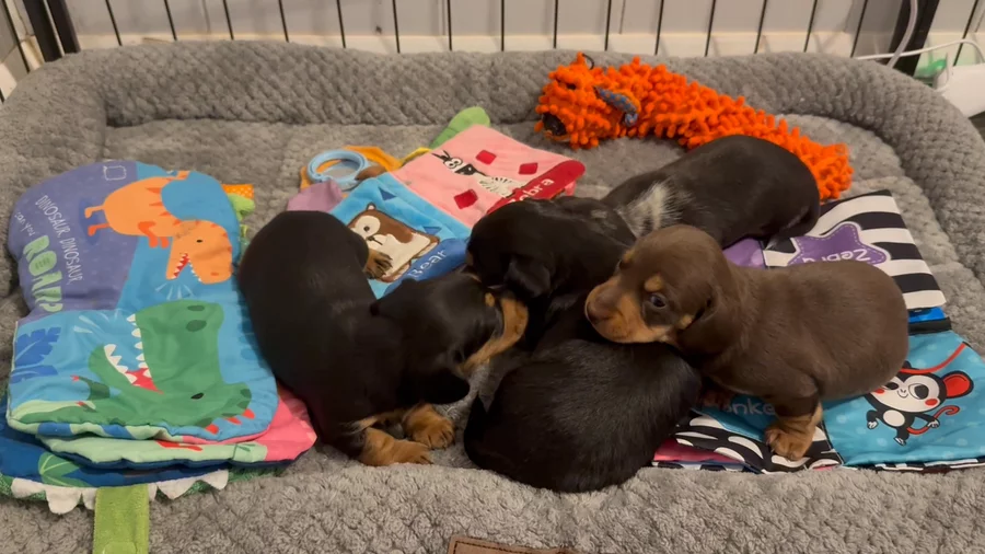 From the minute I inquired about my puppy, Julia was super responsive and able to provide daily updates including photos and videos. Her dogs are a part of her family and you can definitely tell that she dedicates the time to enriching and exposing each puppy in the early stages as they prepare to go to their forever homes. I had a long haul flight from MO to CA and My puppy did so well on the flight and he is an absolute doll! Would recommend Hudson’s Hounds and Julia to anyone seeking a dachshund :)