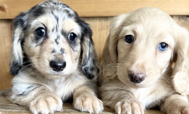 Our puppies include piebald, cream, red, chocolate, chocolate and cream, chocolate and tan, black and tan, black and cream, and dapple. Colors will vary depending on the parent dogs.