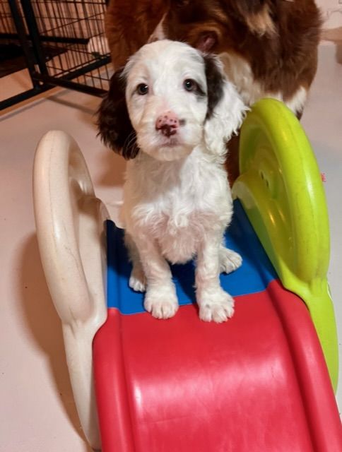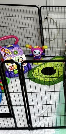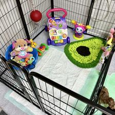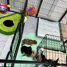 4 weeks tomorrow for these sweet toy Aussiedoodles! Today we expanded. During the daytime they have access to potty/sleep side as well as play side. At night we add the divider and they only have access to the potty/sleep side.