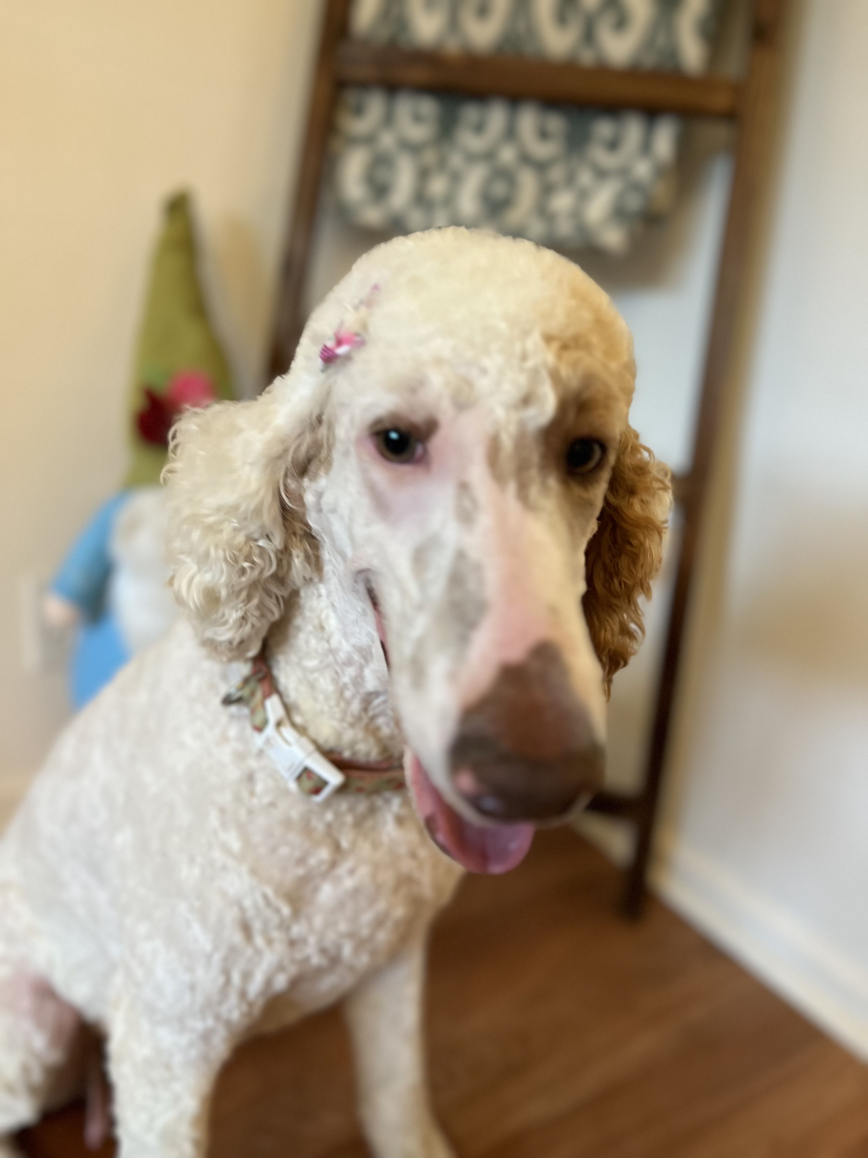 Fiona is a female Poodle. Carefully selected as a great representative of her breed, Emilee decided to make her part of their program. Emilee has passed Good Dog’s screening process, which involved a review of their breeding practices, environment, and the mental and physical health of their dogs.