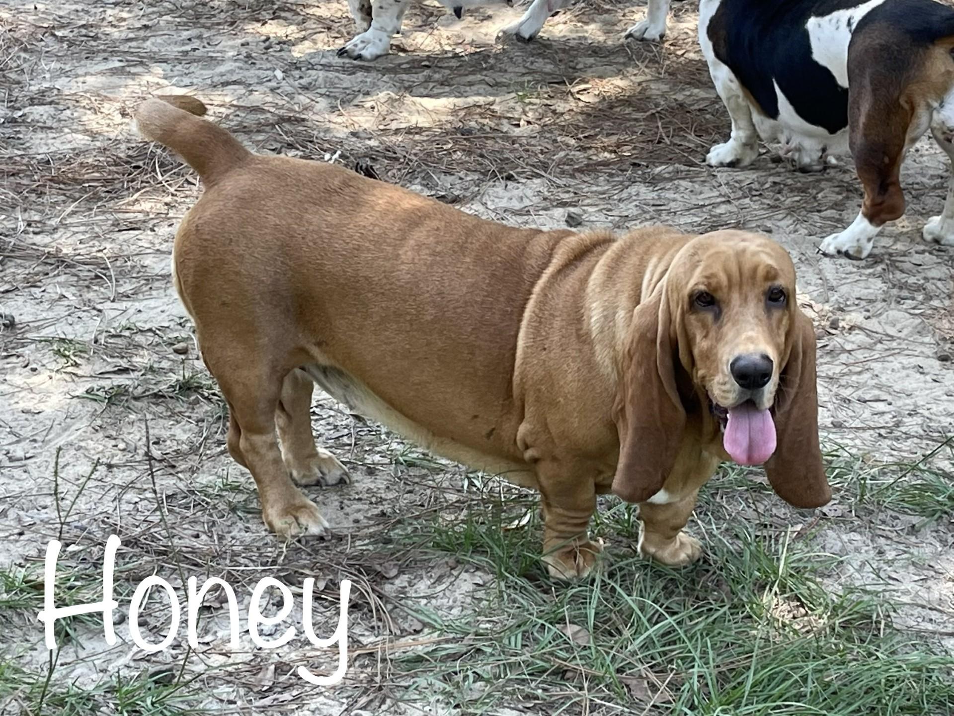 Honey is a female Basset Hound. Carefully selected as a great representative of her breed, Dawn decided to make her part of their program. Dawn has passed Good Dog’s screening process, which involved a review of their breeding practices, environment, and the mental and physical health of their dogs.