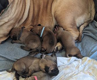 I'm Karin C., the breeder behind Hug-A-Mug Mastiffs located in Strafford, MO. I'm passionate about the Mastiff. I've been showing and breeding healthy litters for many years. I believe in quality, not quantity. We occasionally offer a young adult, as a spayed and neutered pet to an approved home.