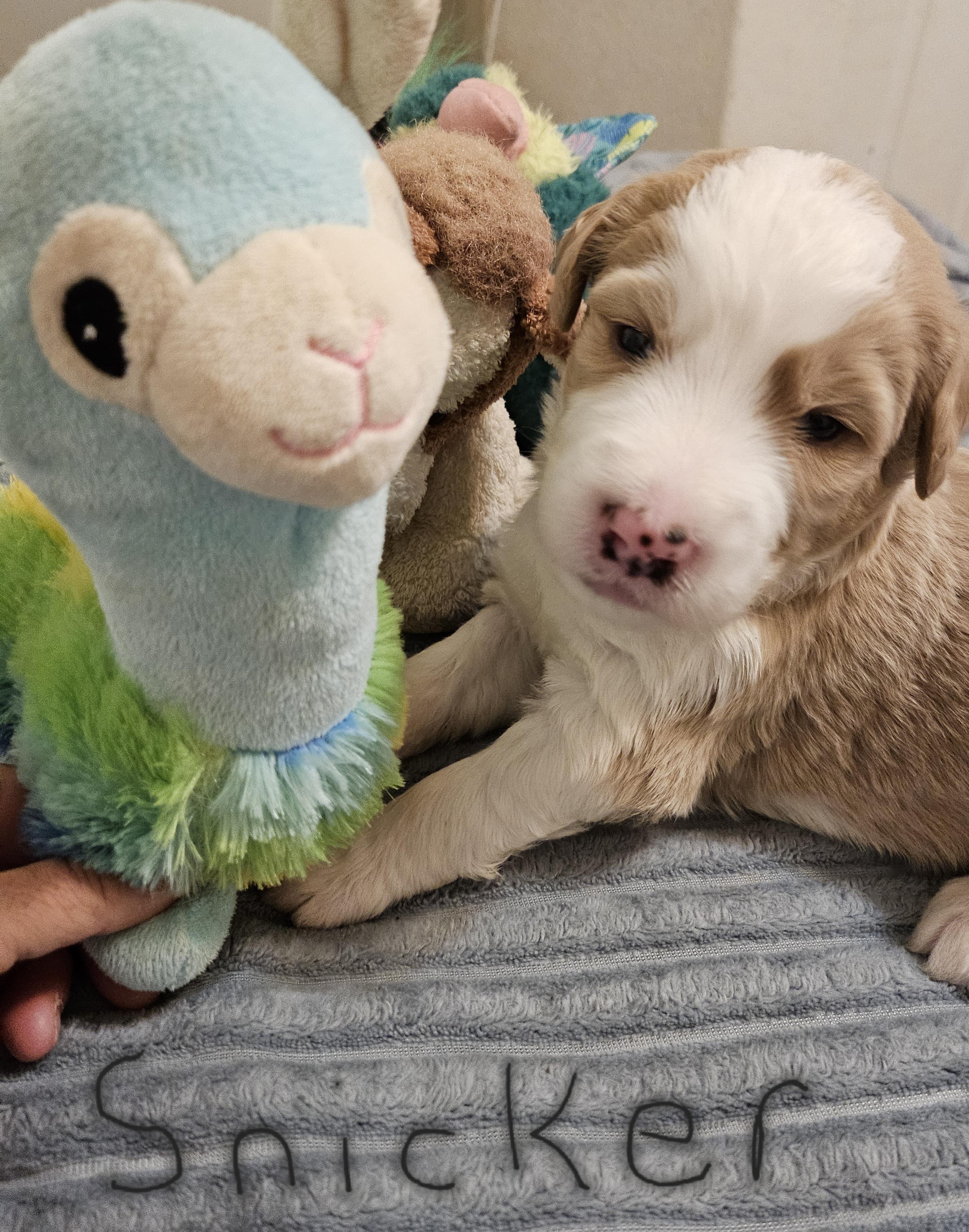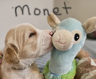 This cuddle-loving pup has a heart as big as his personality. He gives the best hugs, makes us laugh every day with his silly games, and has a remarkable emotional intuition that seems almost human. It’s no wonder that his puppies are already impressing families with their loving temperaments and deep connections. One of his offspring is even in training to become a service dog — a beautiful reflection of the empathy and gentleness Mojo brings to the world.