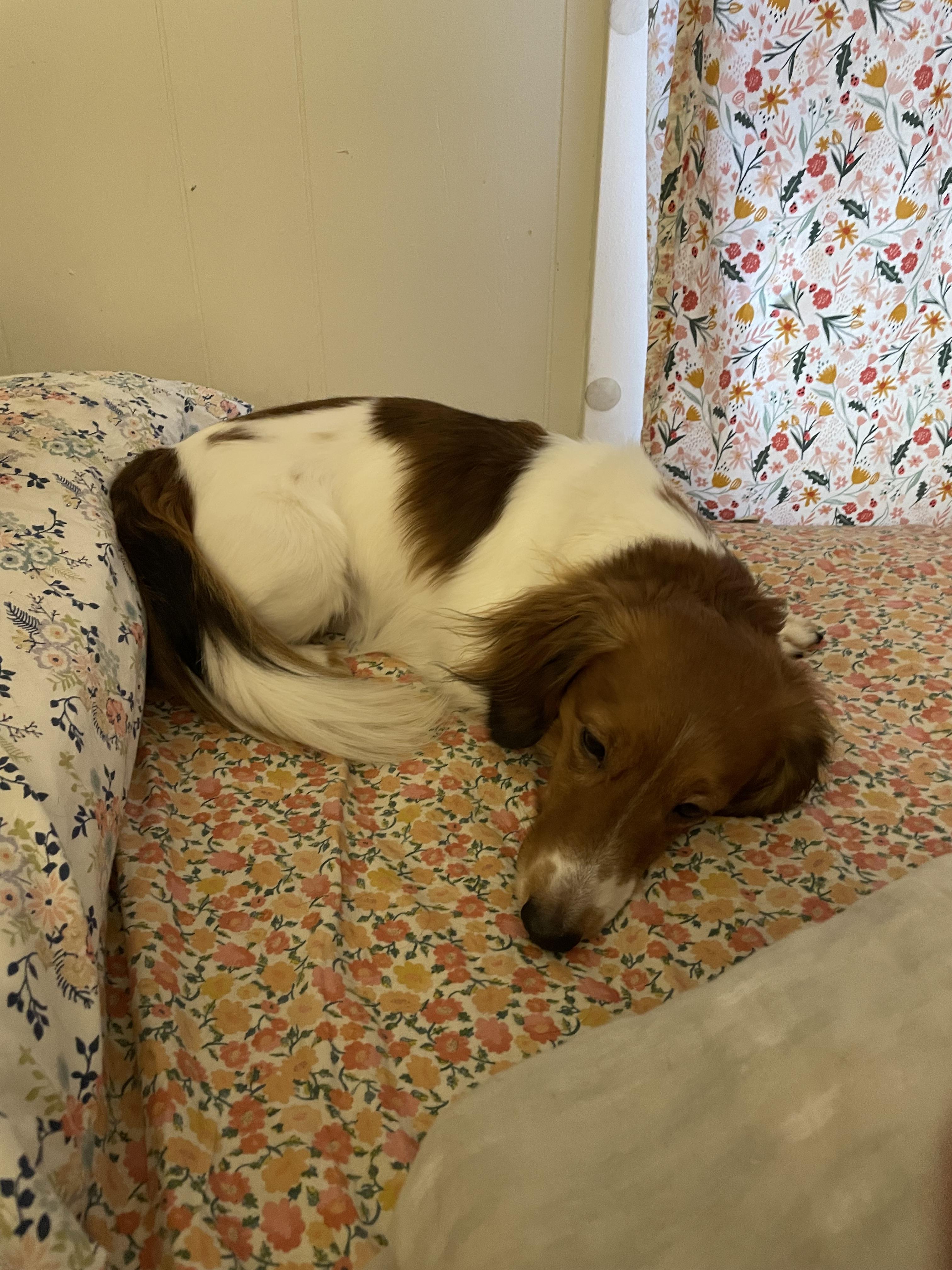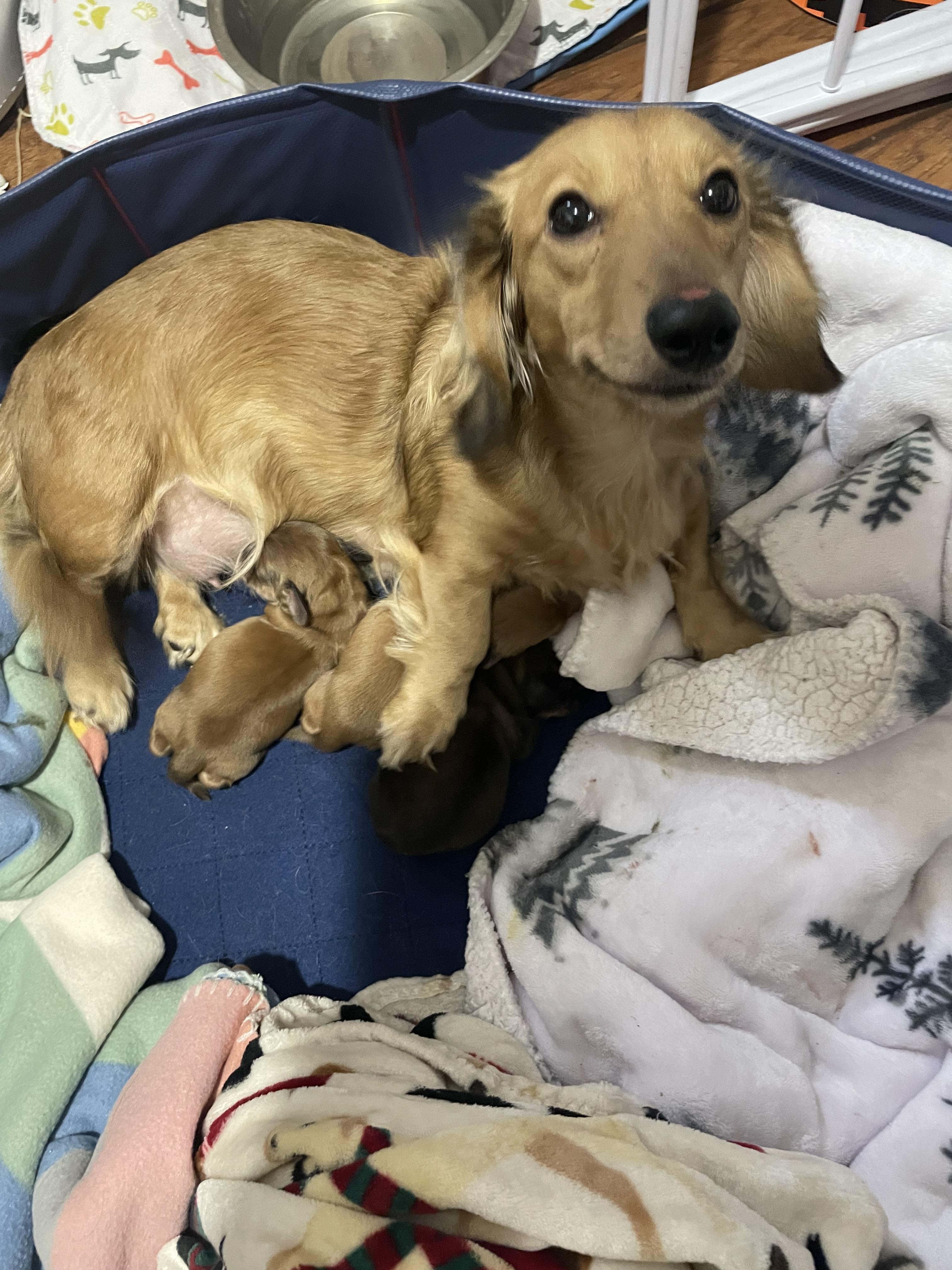 Newton is a male Dachshund. Carefully selected as a great representative of his breed, Diana decided to make him part of their program. Diana has passed Good Dog’s screening process, which involved a review of their breeding practices, environment, and the mental and physical health of their dogs.