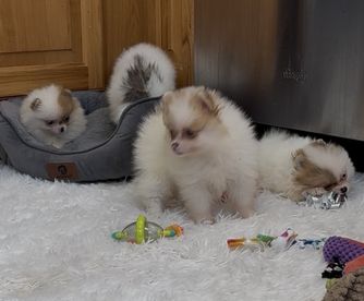 We have been breeding quality Labradors for 40+ years and beautiful sweet Poms for almost 10 years. We research pedigrees, x-ray parents, do DNA genetic testing and occasionally fly semen in from other states to help create our future generation and your next loyal friend. We have produced many generations of service dogs, family dogs, therapy dogs, show dogs and hunting dogs.