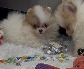 Our Labrador Retriever puppies include black, chocolate, and yellow. Pomeranian puppies include orange parti, black parti, orange, cream, black, white, chocolate, chocolate sable, chocolate and tan, blue sable, beaver, black and tan, and blue merle. Colors will vary depending on the parent dogs.