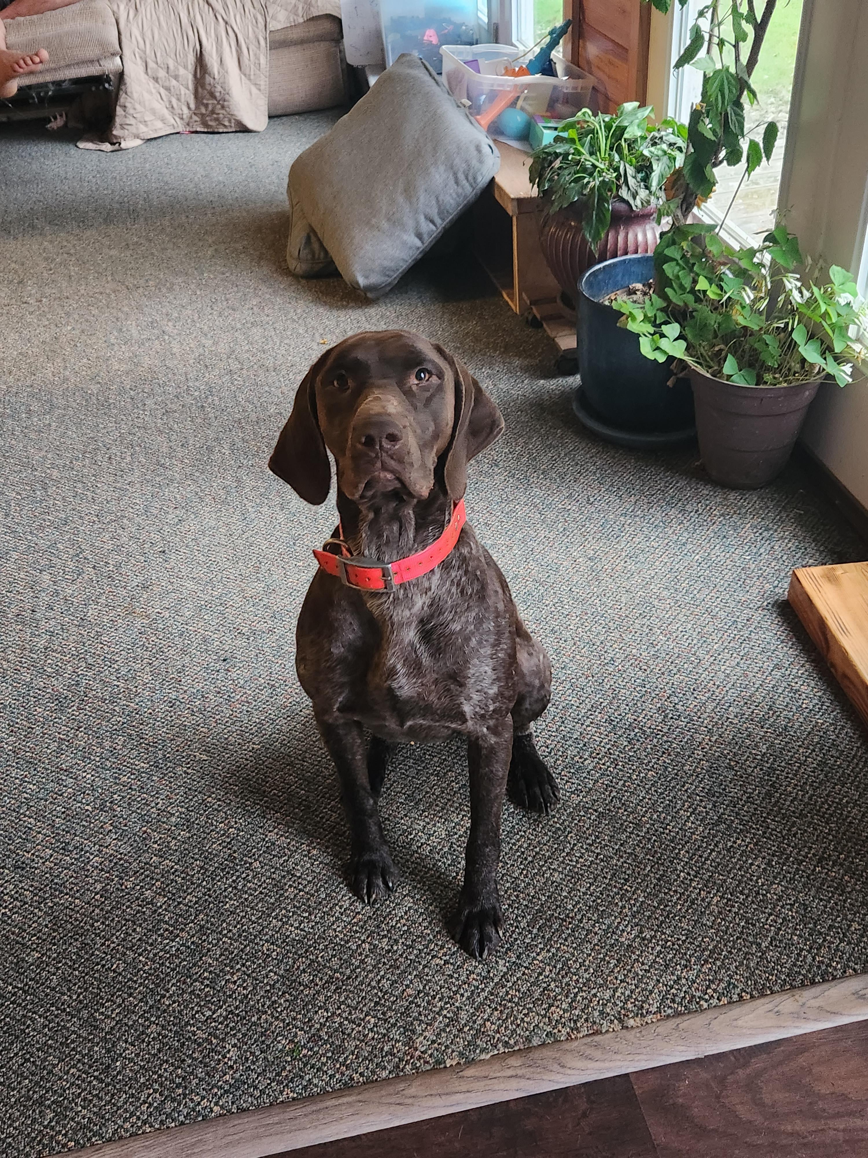 Zelda is our family pet. We started with breeding her mother (Dixie in 2020). Zelda brother Remi is in competition and has completed the Junior Hunt Test through AKC with plans to compete in Senior and Master this Spring!