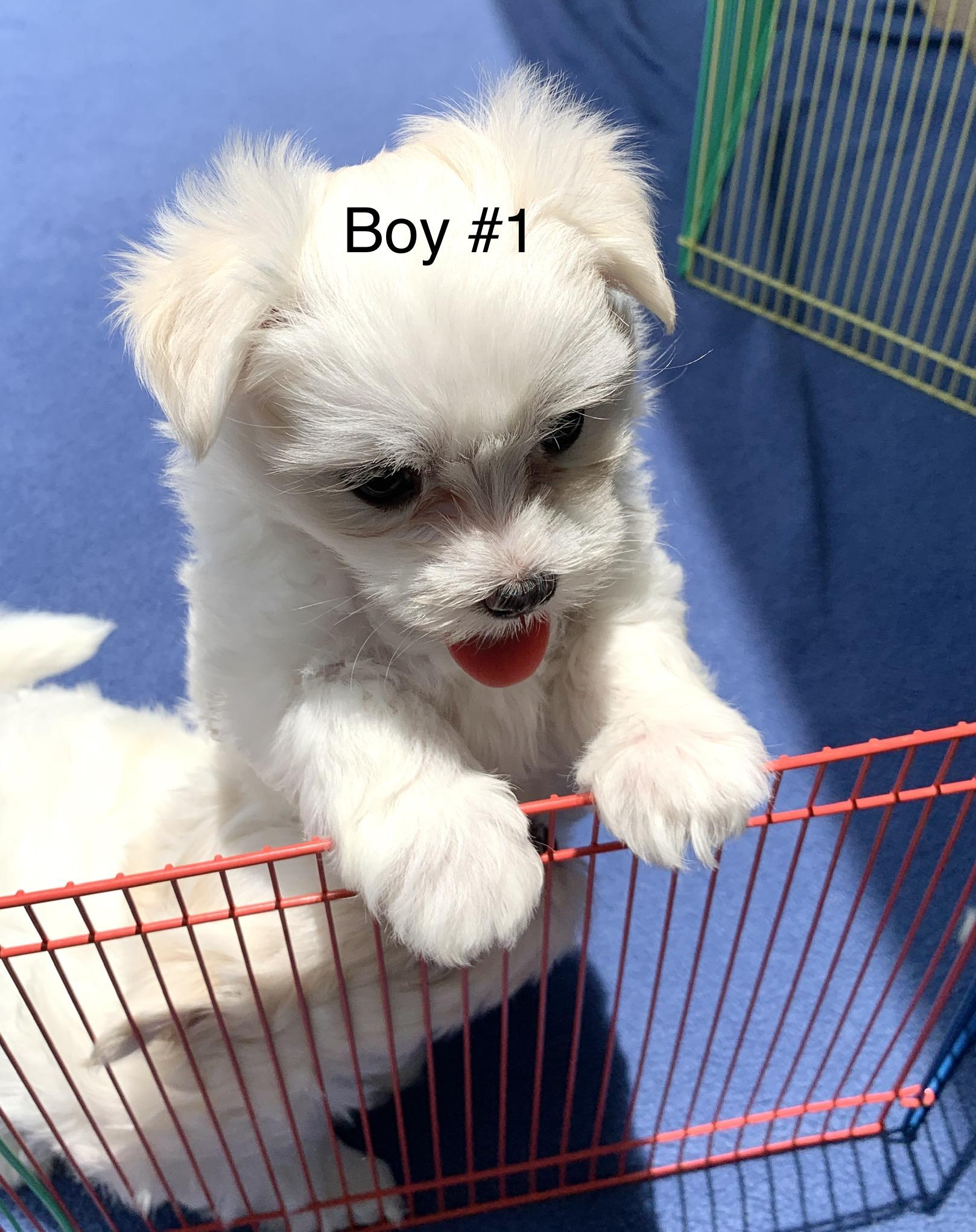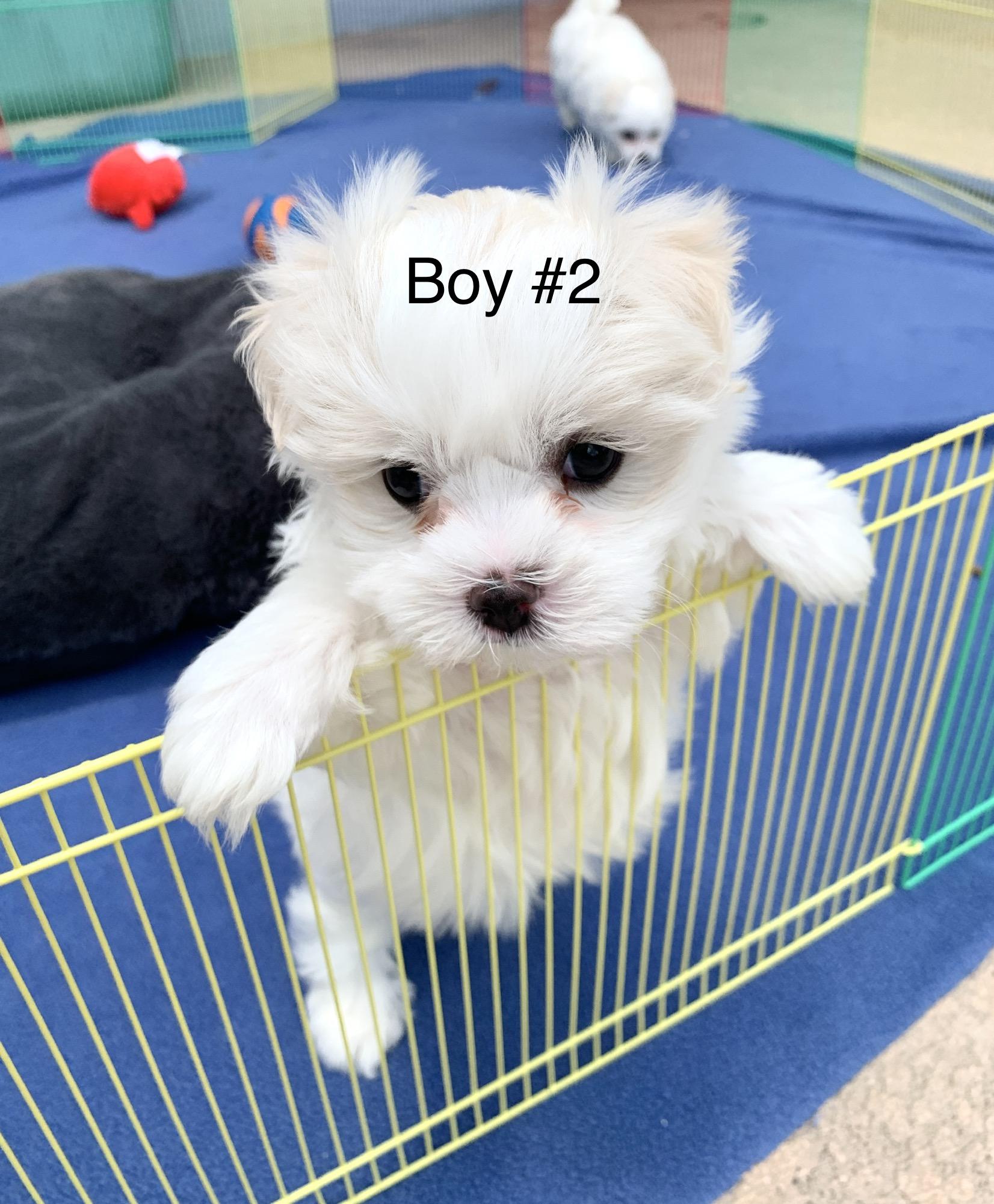 Our Maltese puppies are white. Colors will vary depending on the parent dogs.