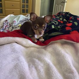 My experience with Tamara was flawless, she kept in contact with me weekly, sent photos of my puppy, (Chilli, chocolate Chihuahua) answered all my questions, walked me through the entire process with “Good Dog,” set-up a flight nanny to deliver Chilli. Sent me all the essentials needed to take care of a new puppy. I couldn’t be happier with Tamara the entire process and especially for my little “Chilli” girl, who has acclimated so well to our family, and is the most loving, sweet,cuddly, smart and most of all quite the character of a puppy!! Chilli is so loved and gives so much love in return. Thank you so much Tamara, for making the entire process simple and worry free. I highly recommend this breeder, couldn’t be more satisfied.