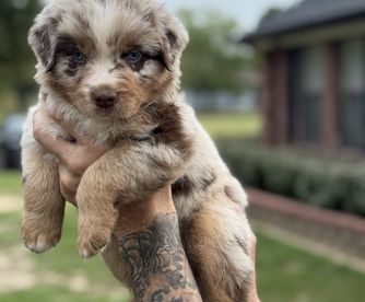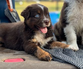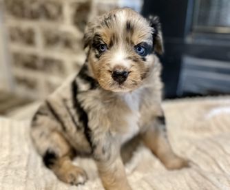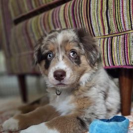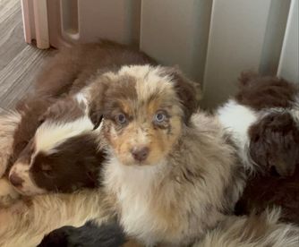 Our puppies include red merle, blue merle, black tri-color, and red tri-color. Colors will vary depending on the parent dogs.